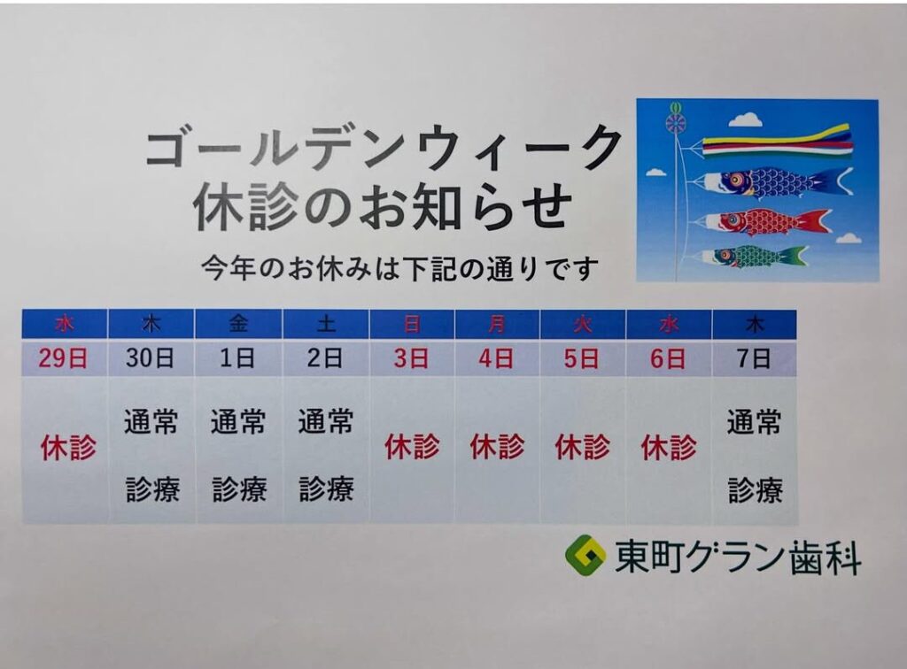 【🎏ゴールデーウィーク休診のお知らせ🎏】