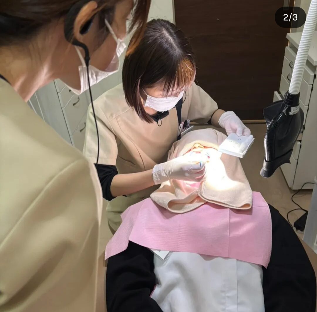 先日衛生士学校の実習生にホワイトニングを体験してもらいました🦷